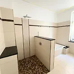 Stylische Messewohnung Mit Garten & Parkplatz apartment features a bathroom with a hair dryer and toiletries. Furthermore, a tub, a separate toilet, and a shower is available.